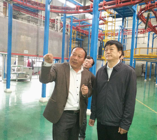 劉樹(shù)華部長(zhǎng)還參觀了亞澳的粉體智能涂裝車間,在噴涂現(xiàn)場(chǎng)向郭總咨詢相關(guān)情況,并在下件區(qū)親自了解、觀察了相關(guān)噴涂配件成品后贊道:“無(wú)異味,亮澤度高,很漂亮”。